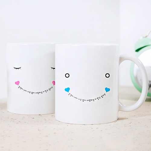 남녀별 심플한 스마일 표정을 표현한 머그컵