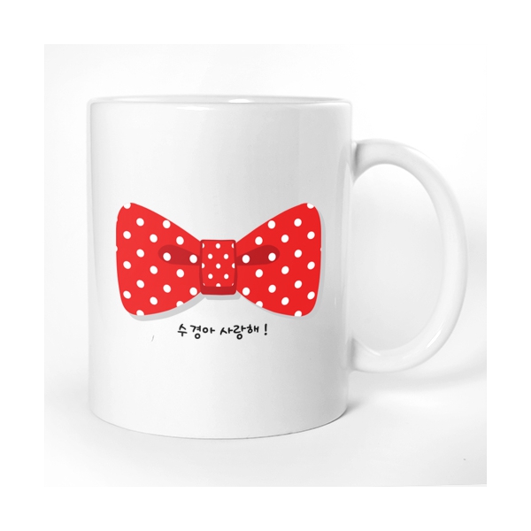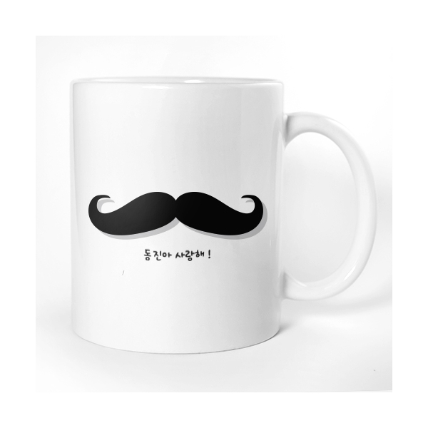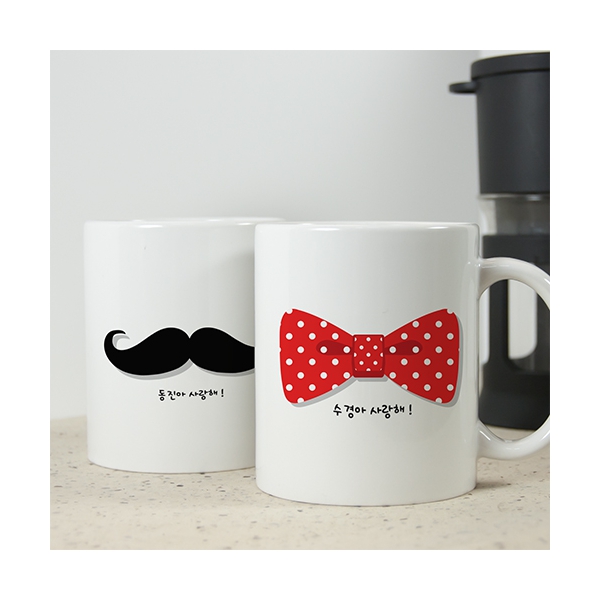 단순화 시킨 리본 및 콧수염을 프린트한 앙증맞은 머그컵 디자인