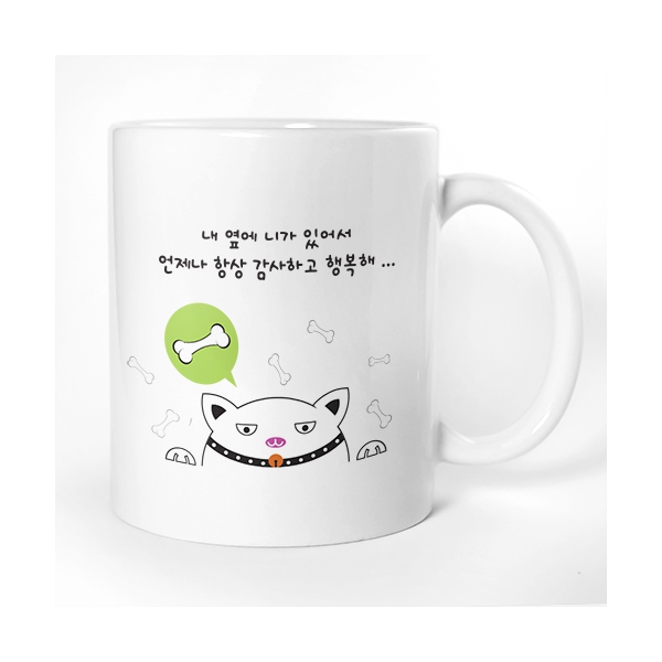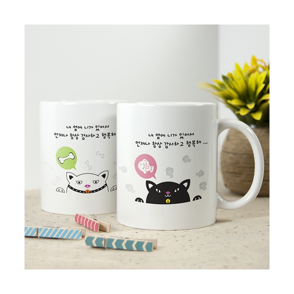 심플한 강아지 및 고양이 일러스트로 귀여운 분위기를 연출한 머그컵