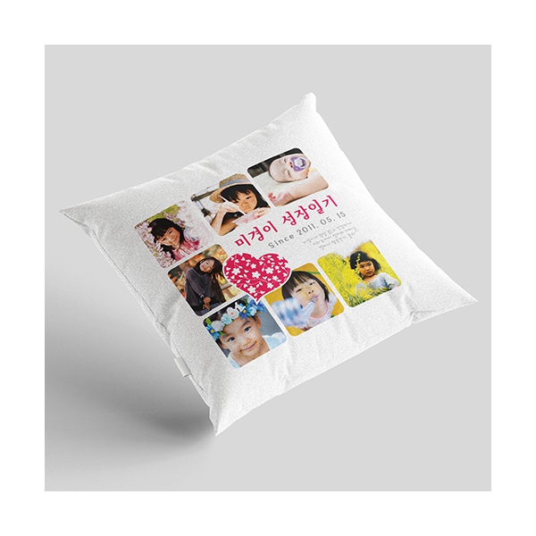 다수의 사진을 깔끔하게 배치한 앙증맞은 쿠션