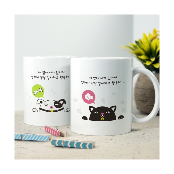 심플한 강아지 및 고양이 일러스트로 귀여운 분위기를 연출한 머그컵