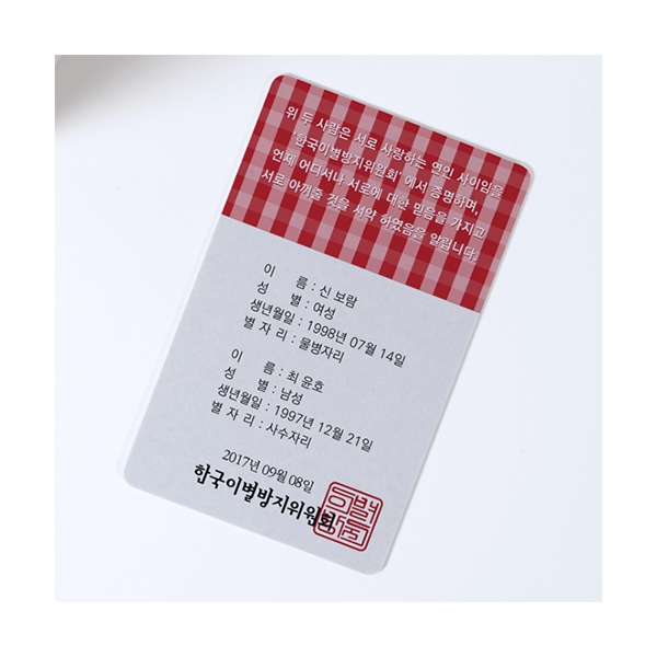 'SNS'형식으로 젊은 감성을 감각적으로 표현한 커플등록증