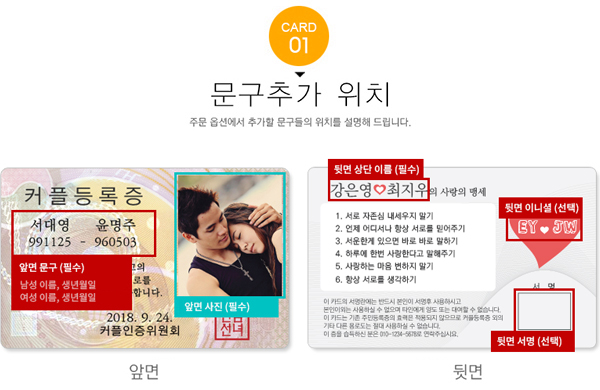 주민증 커플등록증 2장 1세트 > 커플등록증