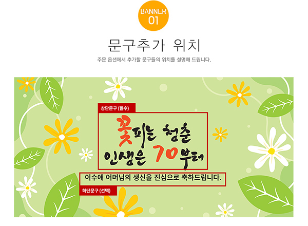 푸르른 물가의 나부끼는 꽃을 표현한 세련된 생일 이벤트 현수막